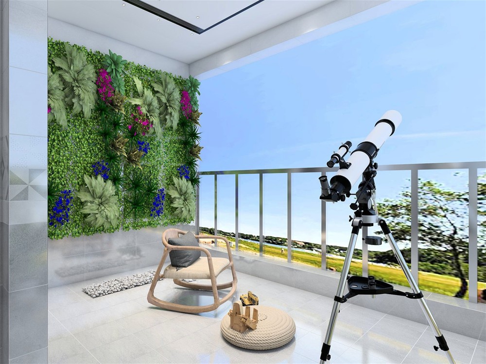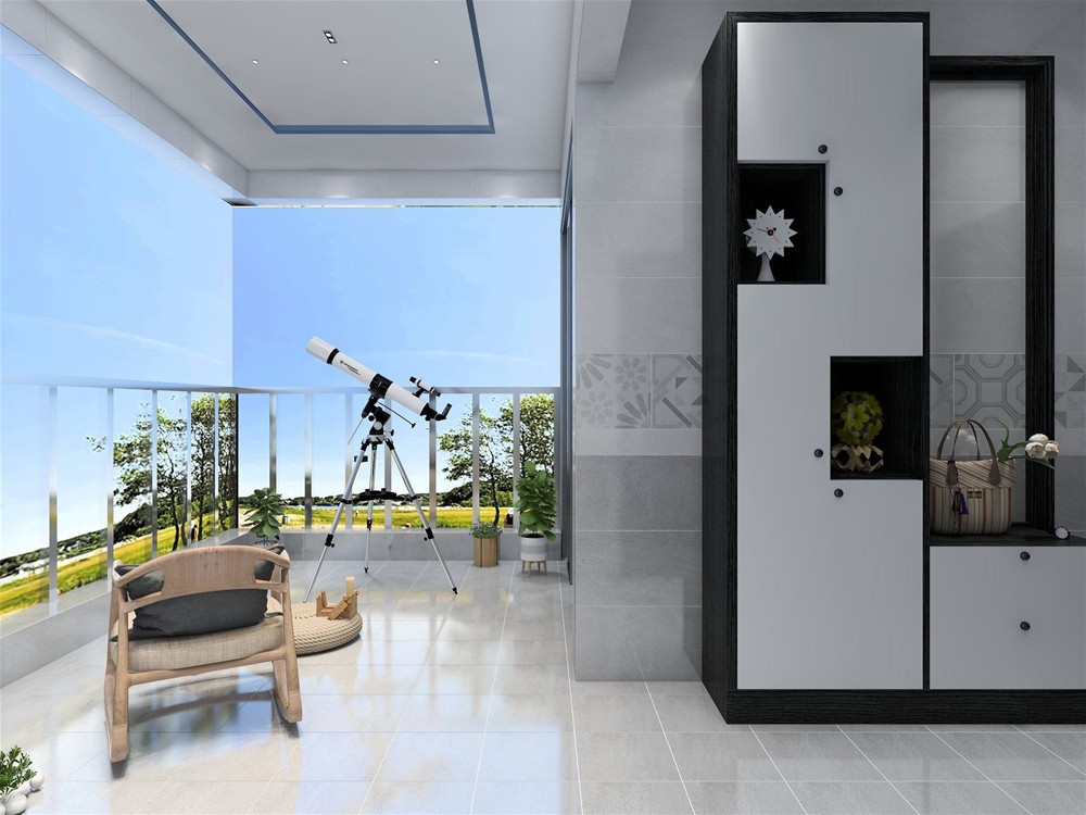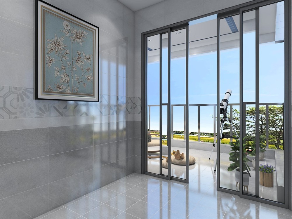 阳台铺贴的砖与厨房一致,浅灰色瓷砖打造质感空间同时也可以作为铺色突出绿植的勃勃生机,营造自然惬意的空间。