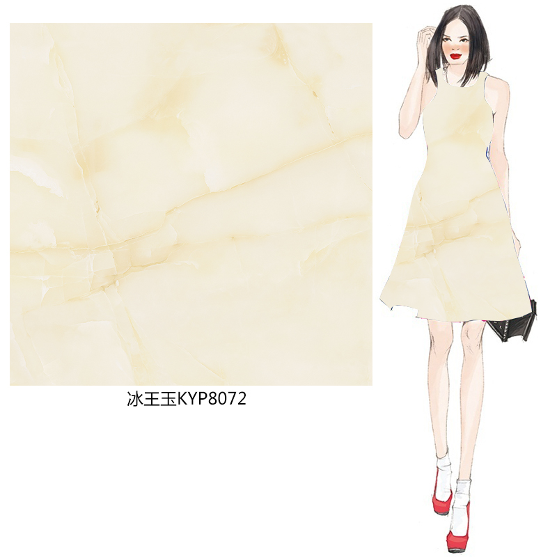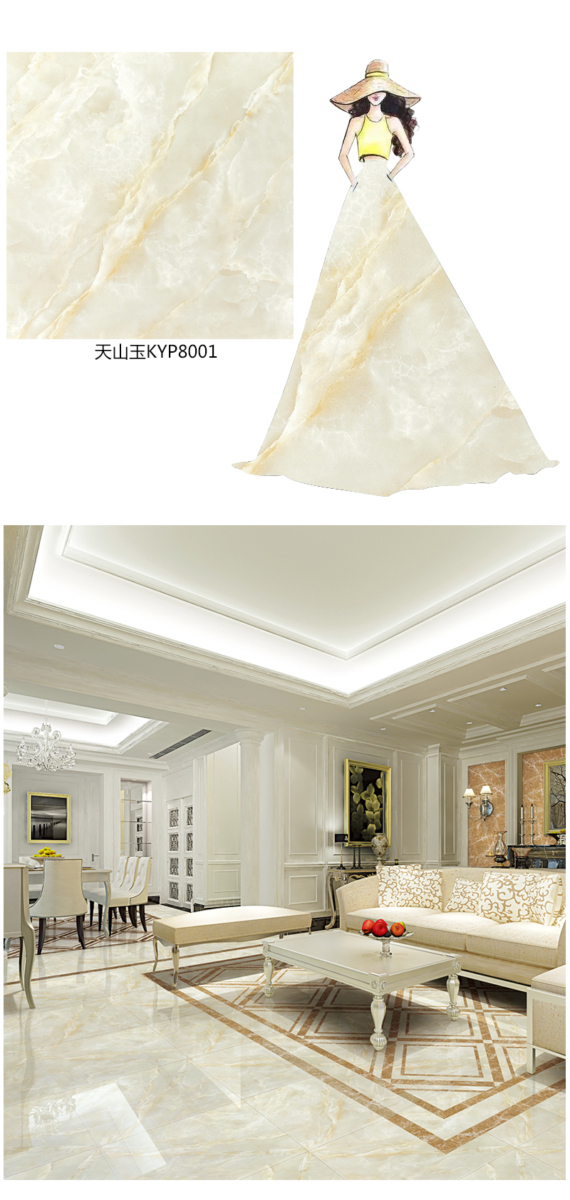 取材自天山山脉的玉石,翡翠般的光泽,宝石般的硬度,且种质细腻润泽,色调柔和,声音清脆,红光内蕴。延续了条状纹理纵贯板面的特性,白光度极好,微晶质面又极大的提升砖面立体感,加上调以温和的土黄色泽,使砖面自然清澈,纹理丝丝入扣,赋予大理石岩层肌理生机,营造出自然、洁净的生活空间。
