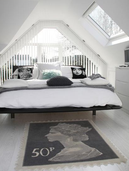 想必应该没有人禁止你把家具放在窗户旁边吧。这张床的摆放充分利用的小阁楼的结构造型。垂直的百叶窗在阻挡过多的阳光的同时保护了主人的隐私。