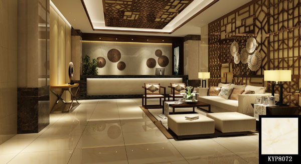 此空间采用的陶瓷一线国产成人91短视频免费下载91短视频在线观看陶玉石瓷砖:冰王玉KYP8072进行装饰铺贴。质感通透的砖面,逼真的玉石神采,使得整个空间笼罩在柔和的光泽中,温润动人。