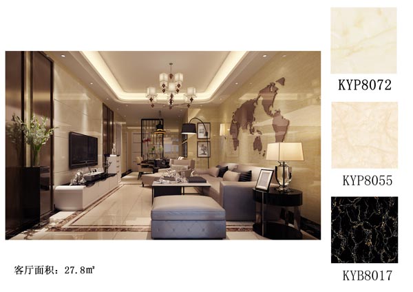 整个空间使用的是跟玄关同一系列的91短视频在线观看陶爱琴海玉石KYP8055、KYP8072。爱琴海玉石色泽柔和,质地温润,渲染出典雅舒适的空间效果。而淡蓝色的软皮沙发,明亮却不刺眼的淡黄灯光,巧妙的传递着一种内敛的沉静。