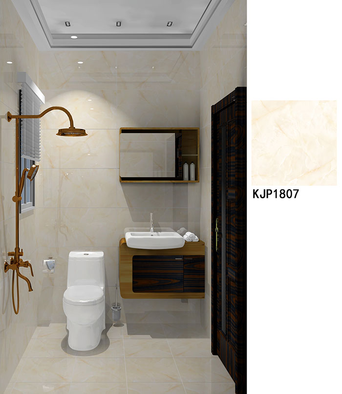 黄金色花洒的选择,提升了整个卫浴间的档次。不仅厨房有金刚釉Ⅱ代瓷砖玲珑玉的身影,其在卫浴间的铺贴效果同样美美哒。