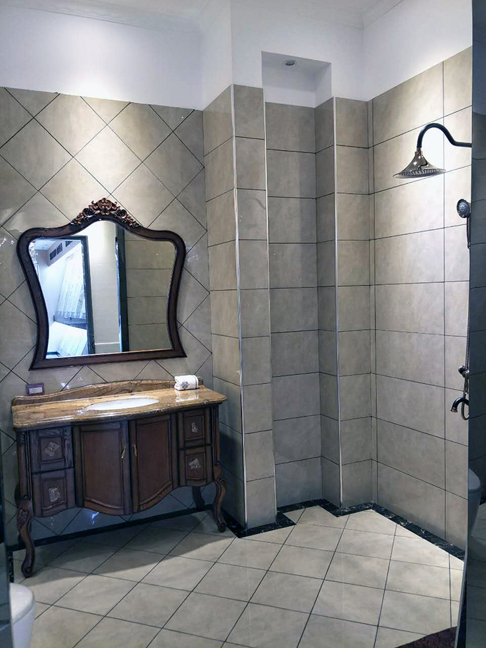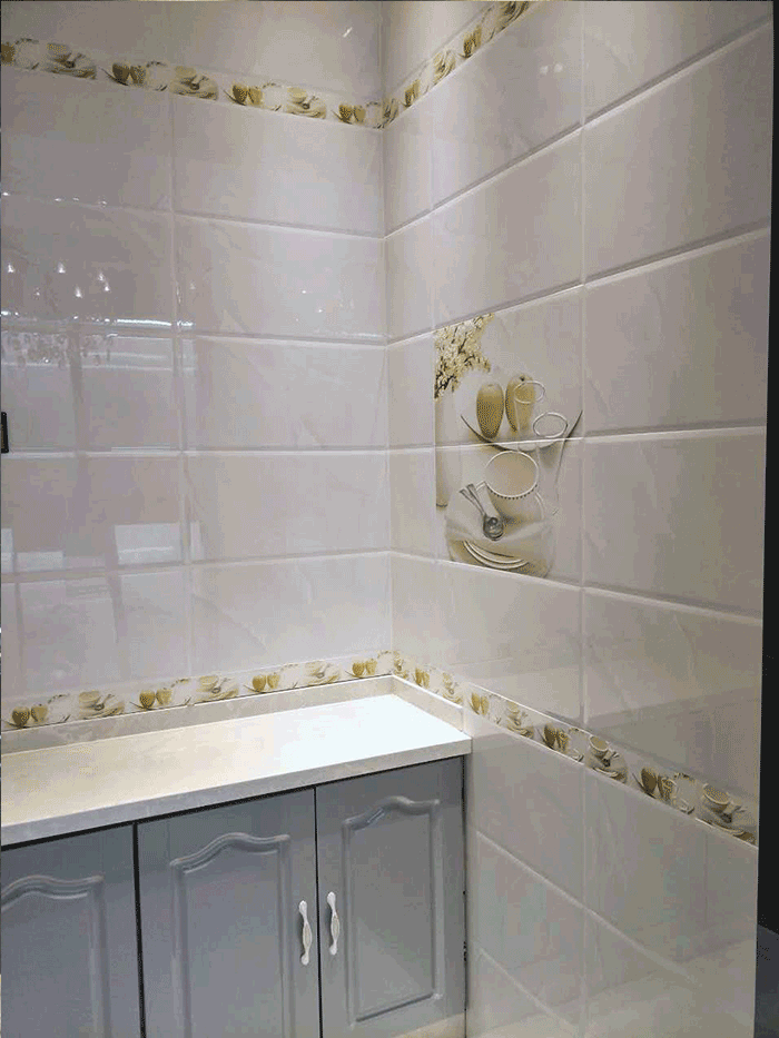 卫浴空间铺贴包括浅色上墙,深色下墙及配套花片产品,陶瓷一线国产成人91短视频免费下载91短视频在线观看陶不仅配套产品齐全,花色也比较新颖。