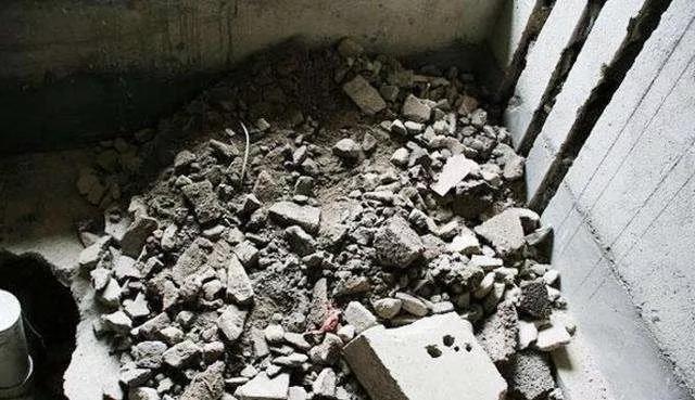 有网友在重新安装马桶的时候发现,当初填充下沉空间的竟是自家敲墙遗留的建筑垃圾。