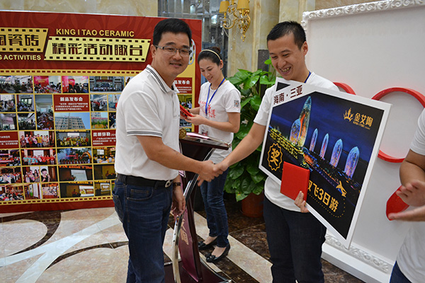 此外,在总结大会上,还对陶博会期间贡献突出的员工举行了隆重的表彰典礼,此次设立了优秀员工奖、陶博会开拓冠军奖、陶博会客户邀约冠军奖、销量冠军奖等奖项,由董事长刘鸿祥、营销总经理罗胜、销售总监刘鸿瑞分别为获奖的员工颁发证书和奖金。