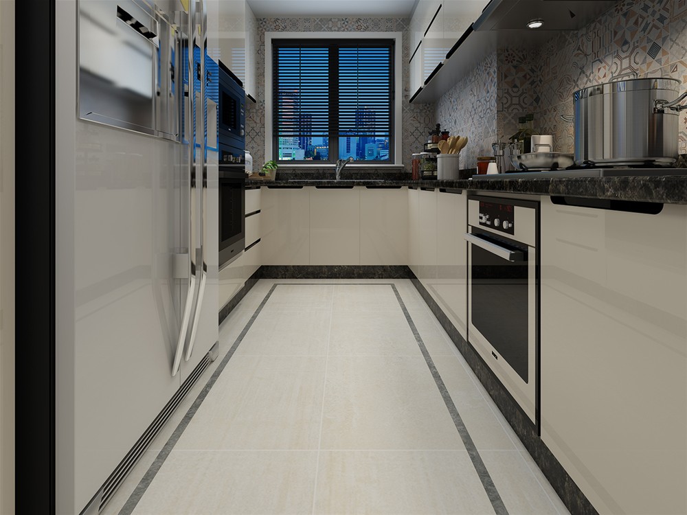 纹理简单的现代仿古砖,切割方便,以混铺方式加入花砖等不同的元素,勾勒一个跳跃、灵动的视觉空间,绝不会让人觉得乏味。