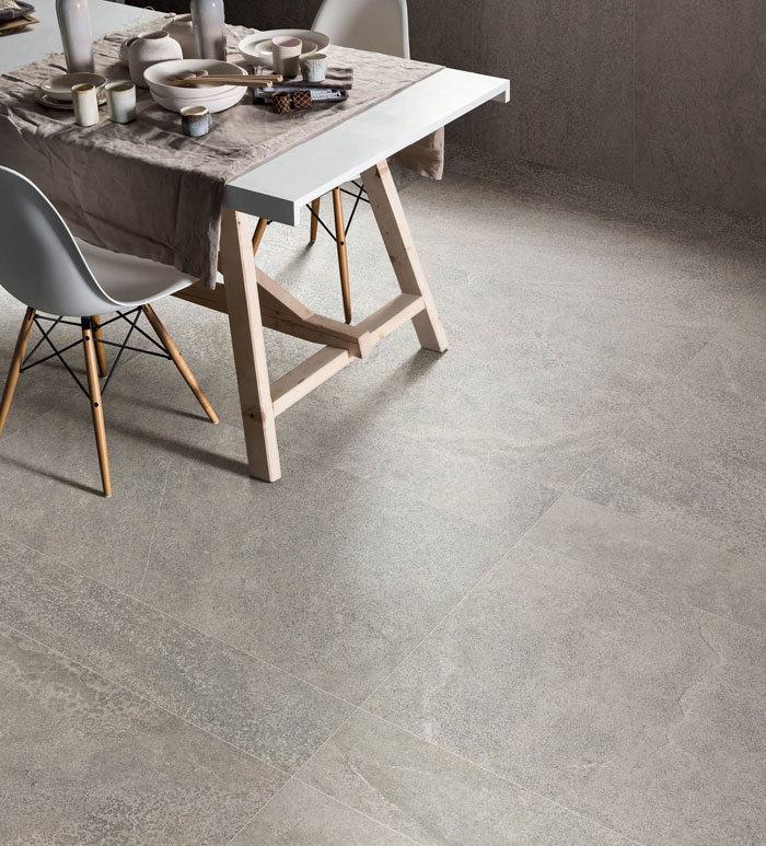 灰色砖不像白色、米黄色地砖那么亮,但它的沉稳与自然,让人看着非常舒服,不会产生压抑的感觉。