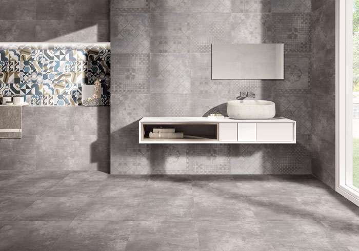 餐厅里的灰色砖,同样可以配以花砖来与之对比点缀,为空间增添一丝活力,时尚百搭又不过时。