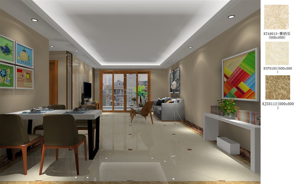 餐厅:客厅与餐厅的天花、墙面一体,没有刻意的进行区域划分,让整个空间更显宽敞明亮。