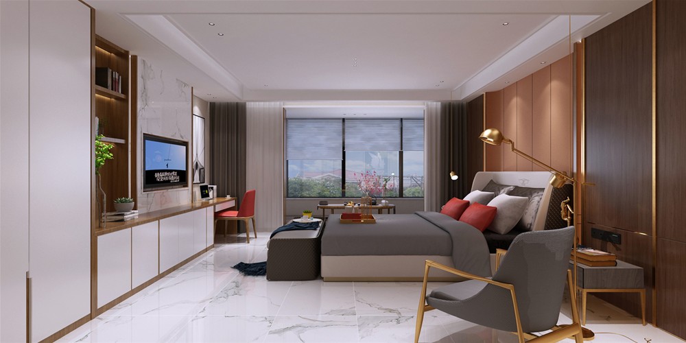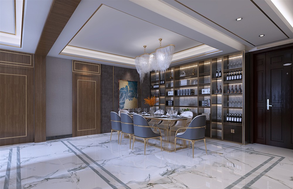饰以精巧的灯具和雅致的硬包,