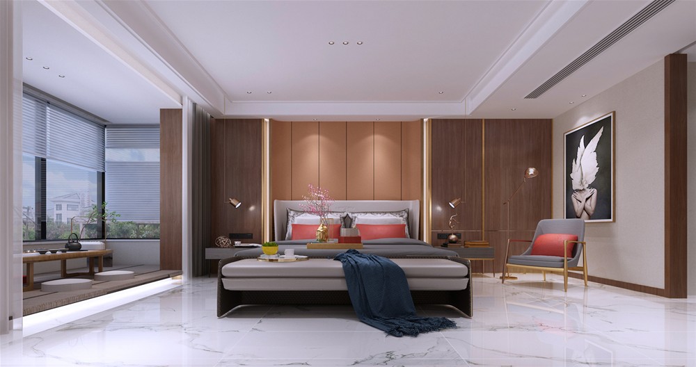 卧室在色彩方面秉承了传统风格