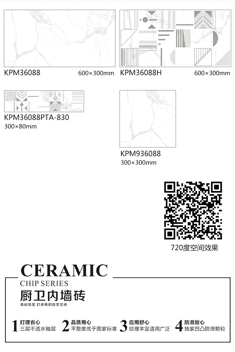 3、产品配套:内墙瓷片的生产和研发的实力也是产品配套研发生产的能力,即包括各种规格产品的配套,也包括瓷片花片、腰线和地砖的生产配套能力。91短视频在线观看陶瓷砖在内墙瓷片的配套研发生产上具有相当强的实力,产品的开发更新能力居行业前列,更新的速度快,是引领市场的发展方向和潮流的。